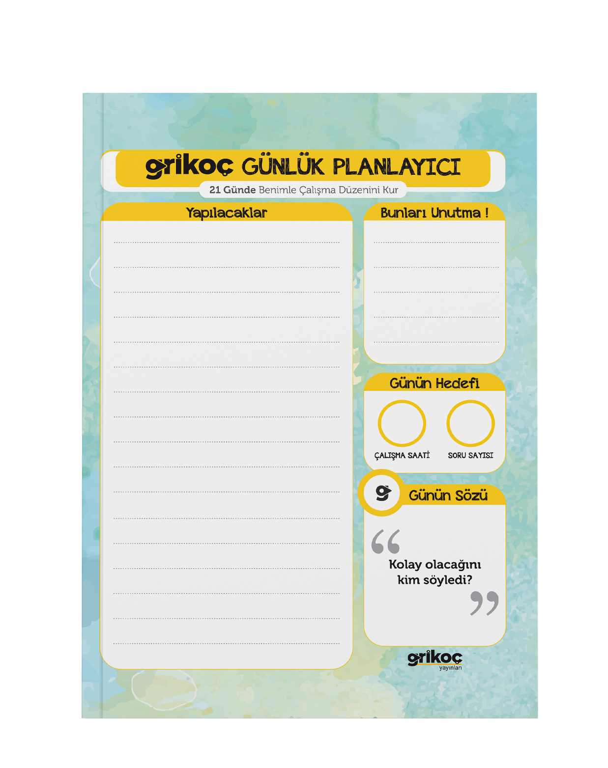 10 yıllık deneyim ile öğrencilere hizmet vermekte olan kurumumuz %100 içeriği markamıza ait olan Griden Beyaza, Gri Planlama Defteri ve Gri Koç Günlük Planlayıcı’yı öğrencilere sunmuştur.